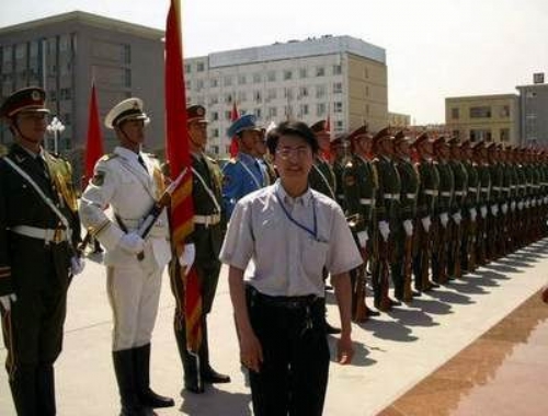 与三军仪仗队合影