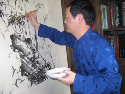 曾永松在创作山水画