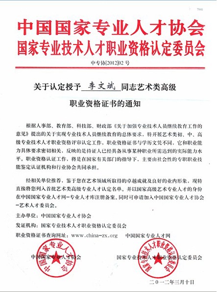 李文斌证书