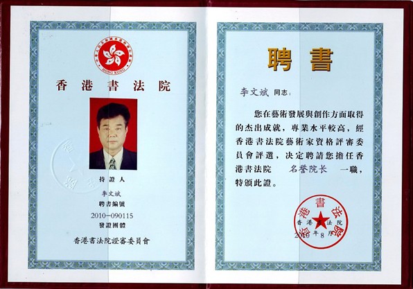 香港书法院聘书