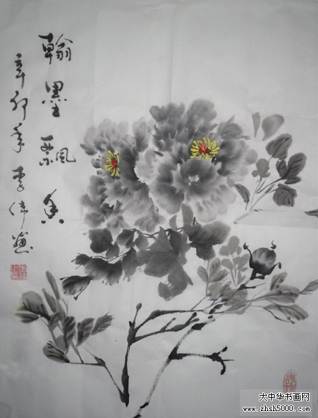李伟国画 牡丹