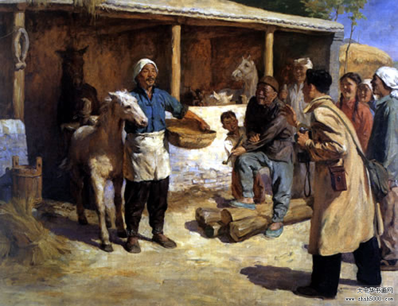 1949年油画《儿子立了功》参加第一届全国美展;