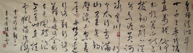 作品多次在全国入展获奖。尤其擅长怀素小草,及孙过廷书谱。