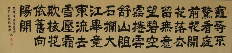 人。现为中国硬笔书法家协会会员。2007年获中国书法家协会主办的首届全国老书法展览入选奖。擅长隶书,榜书,作品浑朴大气,尤擅长幅巨制。