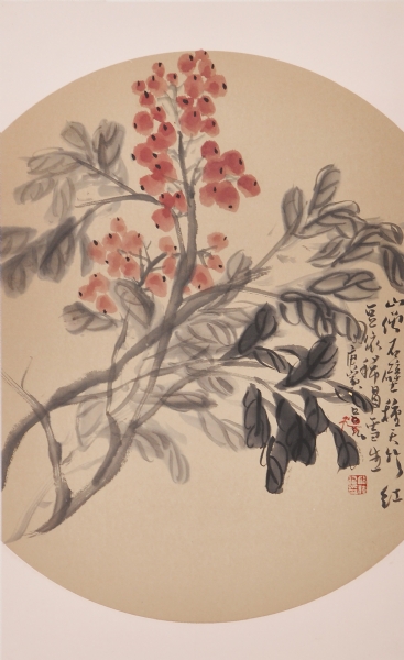 红豆依稀冒雪生 国画
