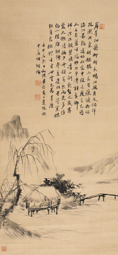 胡铁梅为海派早期山水画家中个人风格较强烈者,其画如其名,线条方折坚强,勾勒爽利,如梅枝铁平,棱棱赠赠,辅以小斧劈皱法,略加点苔。