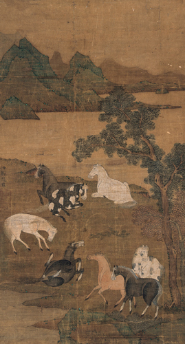 赵雍(1289—约1360),元代书画家。字仲穆,湖州(今属浙江)人。赵孟顺次子。以父荫入仕,官至集贤待制、同知湖州路总管府事。书画继承家学,赵孟顺尝为幻住庵写金刚经未半,雍足成之,其联续处人莫能辨。擅山水,尤精人物鞍马,亦作界画。书善正、行、草,亦长篆书。精鉴赏。传世作品有《兰竹图》、《溪山渔隐》等。