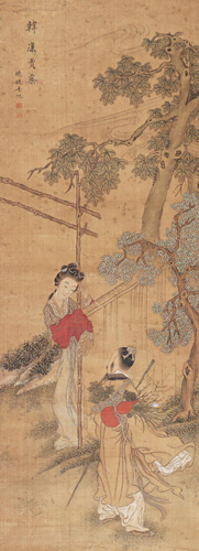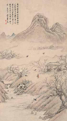 费丹旭(1801~1850),字子苕,号晓楼,晚号偶翁,又号环渚生,乌程(今浙江吴兴)人。工写照,如镜取影,尤精补景仕女,潇洒自然。兼工山水、花卉,以清灵雅澹之笔出之。偶作诗词,亦如其画。书法恽寿平,有韵致。卖画于江浙两省,寓杭州最久。有依旧草堂遗稿。《墨林今话、海上墨林、桐阴论画、清画家诗史》。