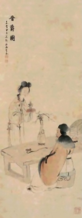 朱本(1761-1819),清代。字素人,号溉夫、竹西,江苏甘泉(今扬州)人。山水画法明文伯仁,笔墨秀润古雅。花卉、人物笔致简淡恬静。游寓京师(今北京)时,与其兄文新、泰州朱鹤年并称“三朱”。
