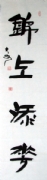 曹大步,名进泽,字海艺,书案宽斋。1967年生于江苏邳州市。其书法作品以隶书为本,涉猎诸家。于传统隶书风格中脱古出新,自成一家风貌。 作品多次在北京、上海、济南、青岛、南昌等地展出,并被美国、日本、澳大利亚、台湾等国内外业内人士收藏,在艺术界引起了广泛关注。2006、2007年入选“中国书画百杰系列邮政明信片”,2008年荣...(详细介绍)