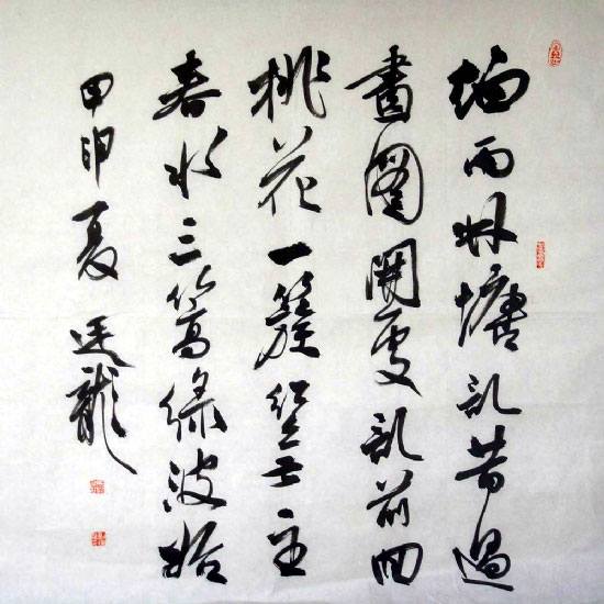 刘廷龙,斋号三竿堂。1962年生,新疆哈密人,祖籍安徽怀远,出生于新疆哈密。毕业于安徽师范大学美术系。现为安徽省书画院副院长,中国书法家协会会员,安徽省青年书法协会副主席,安徽省书法家协会常务理事。
