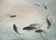 作品有《芙蓉鲤鱼》《菊花》《山茶红艳樱花娇》等。