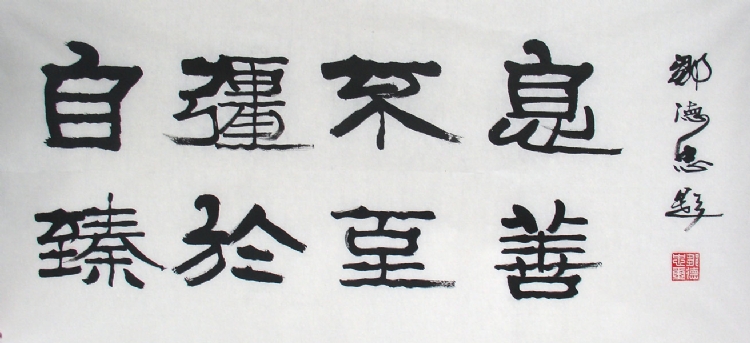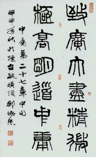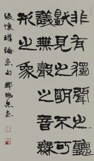 邹德忠先生书法篆、隶、行、草兼善。隶书以汉隶为基础,参入篆书、简椟、魏碑笔意,撇捺的分披、波横...