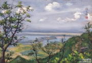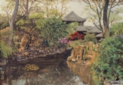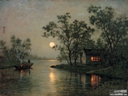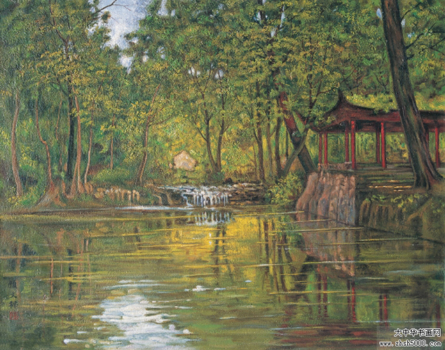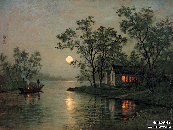 1912年自行试制油画颜料创作出第一幅油画《石湖串月》。
