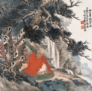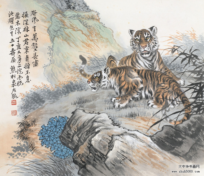 熊松泉(1884~1961),名庚昌,字松泉,以字行。江苏南京人,寓上海。十岁开始学习中国画,十八岁学西画。曾为上海中国画院画师、上海市文史馆馆员、中国美术家协会上海分会会员。 早年于上海、汉口等地以画舞台布景为业,兼擅雕塑,曾塑孙中山像,颇得好评。为海上题襟馆金石书画会会员,时与王一亭、张克龢、赵云壑等人切磋交往。1925年后与杨逸、汪仲山、钱瘦铁、汪声远等常活动于素月画社。与黄质(黄宾虹)、俞剑华、张善孖、马企周等活动于烂漫画社。1932年与张大千、张聿光、汪亚尘、陈定山等活动于中国画会并任理事。中年以后曾潜心研究实用工艺美术。擅绘山水、花鸟、人物,俱臻佳妙。能以左手作画,挥洒自如。尤擅走兽,享誉海内。所绘狮独称于时,与画虎驰名的张善孖齐名,人称“张虎熊狮”。传世作品有《猴》、《双狮》等图(均藏上海中国画院)。《九狮图》刊于1947年《中国美术年鉴》。