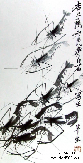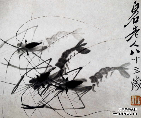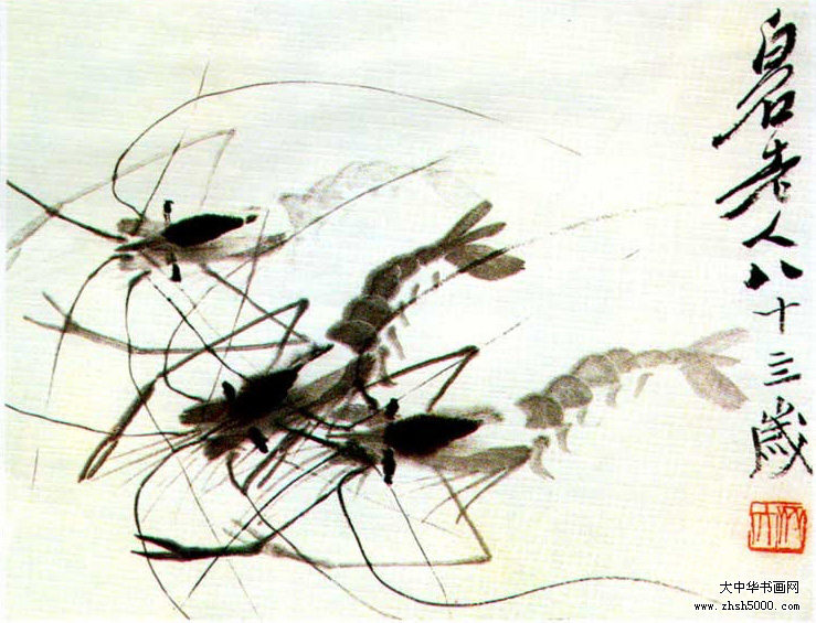 齐白石80岁之后,画虾技术颇为精湛,令人叹为观止。